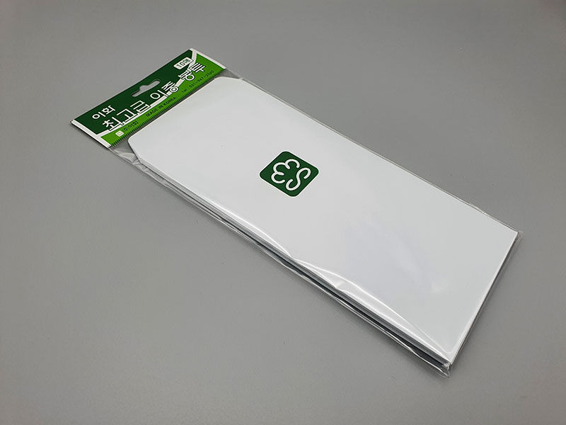 겉 봉투는 100g/m2 모조지로, 속지는 50g/m2 청색지로 제작하여